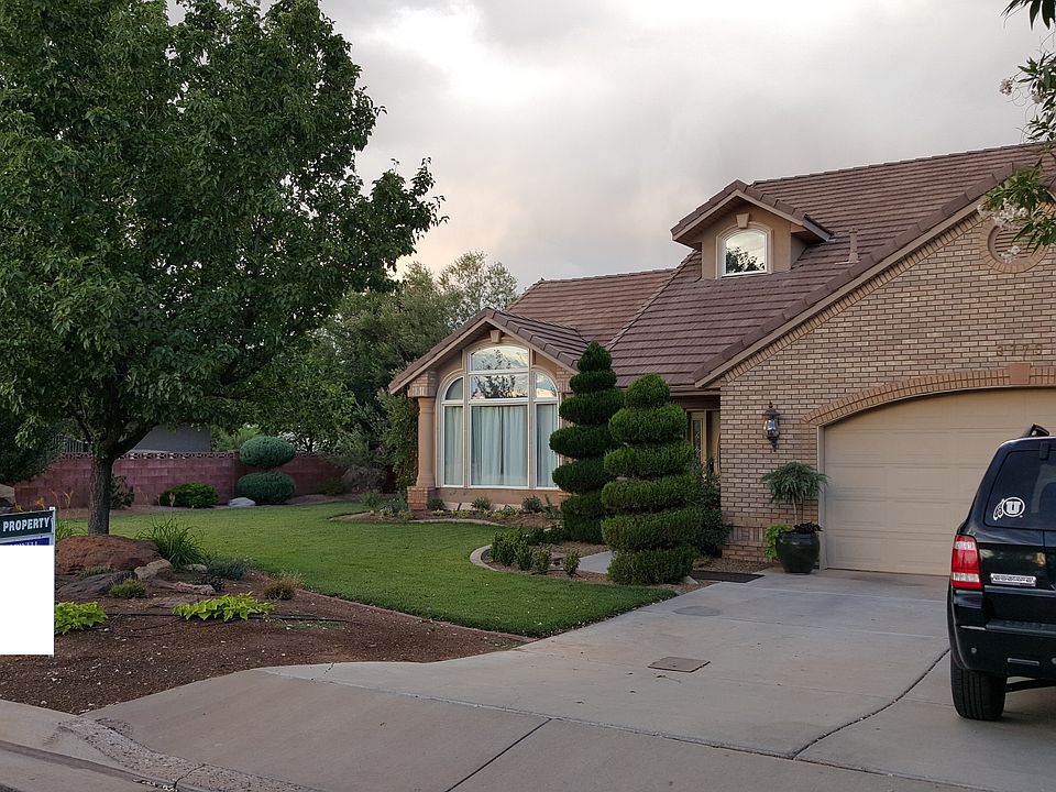 Separate shop in backyard 850 sq ft. with 20 ft high ceiling with 14 ft overhead doors. Includes compressor, 220 outlets for welding and RV. There is a separate apartment that is 687 sq. feet. The apartment has a large master and bath suite with washer/dryer hookup. There is also a living room with kitchenette in the downstairs of the apartment. The home is a traditional two-story design with brick and stucco. There is parking for 2 cars in the attached garage and 3+ in the shop garage. In the main home there is a separate cold storage room which is fully shelved and has room for a freezer as well. The entire property is fenced with landscaping and garden area with 3 fruit trees with room for pool. The main home was updated in 2009 and the large shop and apartment was built in 2009. The home has an open floor plan with vault ceilings, large kitchen, and tons of storage. This property also has the cheapest utilities in Southern Utah with Dixie Power and 2 shares of irrigation water. All appliances in the kitchen are stainless steel and come with the home. The kitchen is complete with granite counter tops. Travertene flooring is in the entrance, kitchen, and breakfast nook of the home, carpet is in the remainder of the home. There is a new water heater and air conditioner for the home. There is beautiful landscaping with large mature trees throughout the property.