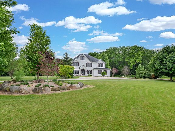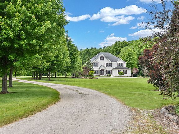 Looking for a quiet, peaceful refuge to call home? Here it is! A tree-lined winding driveway leads to this beautiful Custom Built 2-story house, nestled on a cul-de-sac. The many windows usher in plenty of natural light & pretty views. Open floor plan creates opportunities for larger gatherings. Walk in to a welcoming foyer with stained glass door panels. Main floor boasts both a living room & office (flex rooms) which can be used for what best suits your needs. Recently painted large dining room provides another place to gather. Kitchen features SS appliances, walk in pantry, plenty of cabinetry & counter space. Sliding glass doors lead to patio, perfect for enjoying meals & views. Oversized family room has fireplace, ceiling fan and extra large windows. Hardwoods throughout main level. Full bath along with a walk in storage closet complete the first floor. Take the extra wide staircase up to the 2nd floor reveals extra wide hallways, newer luxury carpeting & padding, luxury vinyl Duramax flooring. Primary en suite showcases an extra large bedroom with newer carpet, ceiling fan & custom Hunter Douglas room darkening window treatments. Relax in the gorgeous, recently remodeled bathroom with skylight, new cabinetry & dual sinks, Quartz counters, new toilet, flooring, & a whirlpool tub/shower with stylish tile & glass surround. Large walk-in closet perfect for your wardrobe. Also on the 2nd floor, there are 5 generous sized bedrooms, with one having a full bath & another fully plumbed to add another. Convenient laundry room with sink & newer washer and dryer make laundry easy! Additional storage room for all the extras. Discover the full size, very spacious walk-up attic with multiple skylights & newer attic fan. Great for storage or convert to a gaming room, art studio. So much potential awaits there along with the unfinished full walk out basement. High ceilings and plenty of light. Features another beautifully finished bath. Two attached garages offer plenty of room for vehicles with a 3 car side loading garage & an additional 6 car garage, providing space for ATV's, boats, etc... The professionally landscaped 6+acres of loveliness, the property showcases a small creek, various garden beds & a plethora of gorgeous trees, including several fruit trees. Brick paver patio & fire pit are situated near the sweat lodge, or better known as an outdoor sauna! So unique! Newer dishwasher & Hunter Douglas custom window treatments. Dual zoned w/separate systems. Short drive to Illinois River, Goose Lake Prairie State Natural Area & downtown. Truly a hidden gem!