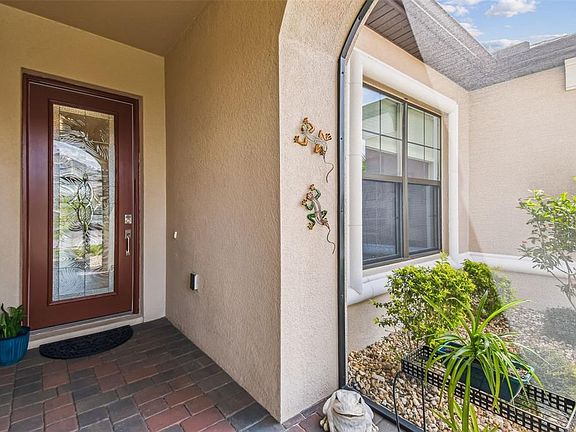 Sought after VERSILIA subdivision in Solivita, within walking distance to the Village Center. BETTER than NEW, this home was built in 2022 with extensive upgrades throughout the home & professional exterior Landscaping. Walk inside the screened front porch which leads you to an elegant LEADED front glass door. Enter the FOYER to this uniquely designed LETIZIA model, which offers 3 separate sleeping areas, each wing with it's own bathroom for privacy & convenience. Seller has made extensive upgrades including Mohawk engineered luxury flooring throughout main living areas & bedrooms/study have plush carpeting. The FOYER, DINING & GREAT room afford TRAY ceilings with CROWN MOLDING inlay. The GOURMET Kitchen features a large QUARTZ Island with built in sink, seating for 4 & storage below. Centered in this Kitchen is a beautifully appointed Stainless Steel Range HOOD over cooktop. The OVEN & MICROWAVE combo are built into the cabinets. Tiled backsplash, accent lighting & good sized WALK-IN Pantry. The kitchen cabinets afford oversized DRAWS, this allows easy storage for your pots & pans. Enjoy this OPEN FLOOR PLAN for entertaining family & friends. The PRIMARY Suite offers plush carpeting with room darkening shades. The En-Suite Bathroom has a generous sized Walk-in CLOSET, also a Walk-in SHOWER with a built-in bench & seamless GLASS Shower Door. Second Hall Bathroom has a Tub-Shower combo & the Third Hall bathroom affords a Walk-in Shower. This home is naturally bright with it's neutral paint color throughout. Sit back & enjoy your morning coffee in your private SCREENED LANAI overlooking a peaceful greenbelt & enjoy the Pond view from your backyard. Laundry room with full sized Washer Dryer & ample cabinets for storage. The Two Car garage is equipped with an UPGRADED outlet to charge your Electric Vehicle. Come view & buy this home today. Solivita is an active adult 55+ community located in Kissimmee, Florida. It is approximately 50 minutes from Disney World & the Orlando International Airport. Solivita has a total of 5,470 homes. Approximately 7500-10,000 people live in Solivita (not all year round). Amenities include: - a manicured SOFTBALL diamond & field - 36 holes of CHAMPIONSHIP GOLF that can be played by joining the Stonegate Golf Club or paying as you go - 2 STATE of the Art AMENITY centers with updated exercise equipment, yoga studio & meeting rooms - 3 restaurants - 14 HEATED POOLS - 17 PICKLEBALL courts - 9 TENNIS courts - 4 BOCCE BALL courts - 4 SHUFFLEBOARD courts - 3 HORSESHOE pits - a BILLIARDS room - miles of bike paths - 2 DOG PARKS (Small & Large Dogs) - Corn Hole - Tot Lot PLAYGROUND - COMMUNITY GARDEN - over 250 resident clubs. The HOA: - maintains the LANDSCAPING & IRRIGATION systems in the common areas as well as at individual homesites - maintains the roads throughout the community - PROVIDES SECURITY with gate guards and mobile patrols including the Polk County Sheriff - allows AUTOMATED GATE ACCESS for residents via license plate readers - provides residents with Fiber Optic Internet & TV service. NEW MAJOR SHOPPING CENTER opened directly across from the Solivita it features Sprouts Grocery, TJ MAXX, Ross, Burlington, Rack Room Shoes, 5 Below, Ulta, Outback, First Watch, 5 Guys, Urgent Care, Dentist, TD Bank, Petco & Hair Cuttery & MORE TO COME.***