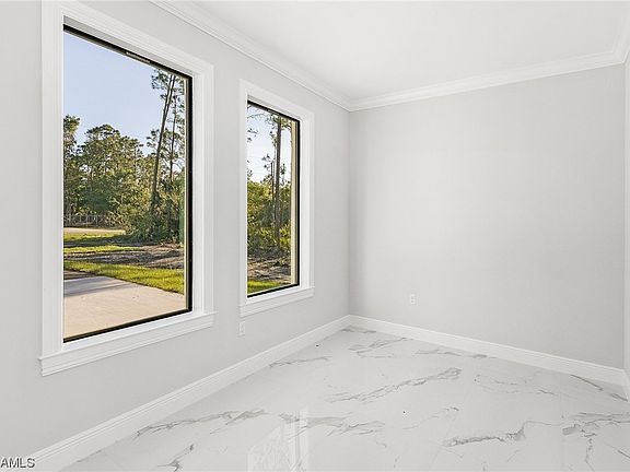 Stunning, 3 bedroom plus den, new construction situated on an all upland, wooded 1.14 acre lot! This property offers a peaceful and gorgeous surrounding with tons of mature pines throughput the entire property! As you enter the house, you will notice the great attention to details and high quality built. Such as tall french doors, a lovely and airy living room with tile throughout the house, a fresh white kitchen with quartz countertop, a waterfall island, beautiful light colored backsplash, and 42" wood cabinets, soaring high tray ceilings, beautiful crown molding on main living area and master bedroom, 6" baseboards throughout, 8-ft doors, and a beautiful touch of modern with waterfall faucets in the bathrooms. Located in the rapidly growing Golden Gate Estates area, with highly rated Naples public schools, and numerous county infrastructure plans- makes this home the perfect investment for your family! Estimated Completion Time by the End of June, 2023. MLS pictures are a representation of house of same model, not actual property. There will be some variations. CHECK OUT THE VIDEO WALKTHROUGH OF A SIMILAR MODEL HOUSE!