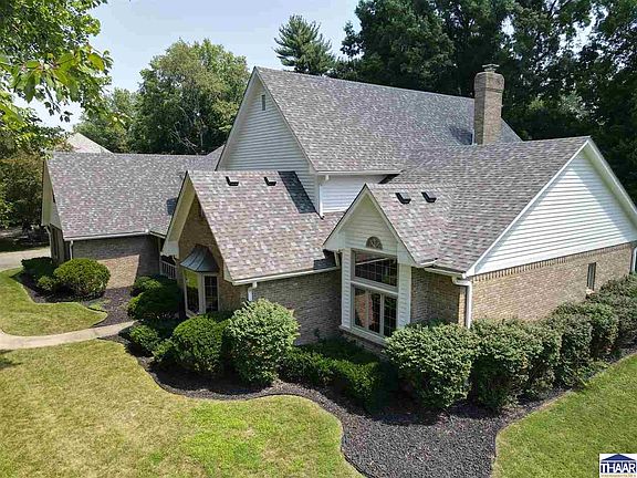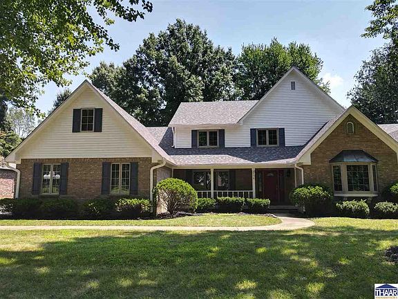 Here is a fantastic home at a reduced price nestled in quiet Lexington Farms Subdivision on Terre Haute’s south/east side, located close to I-70 and 641 bypass for access to top-tier schools and amenities. There are new Anderson windows, a new roof, 2 new furnaces, new Culligan water softener, recently painted ceilings with popcorn finish removed, and freshly stained hardwood floors. The foyer opens into an impressive great room with 25 ft wood beam coffered ceilings, floor to ceiling windows and stone fireplace, a cook’s kitchen with granite counters, island with gas cooktop, pantry towards the formal dining room, and a breakfast room with a skylight. The main floor also has a half-bath and a large office in the front leading to the primary suite with 3 walk-in closets. Off of the great room is a wonderful screened-in porch and a nice-sized deck wrapping around to the kitchen for easy grilling and chilling. The backyard is an oasis with room for a pool or plenty of yard games and backs up to the woods for privacy. Upstairs there are 3 bedrooms, one with an ensuite bath, two with Jack & Jill bath, and the bonus room above the 3-car garage with brand new flooring. Clean, spacious, and ready for immediate occupancy!