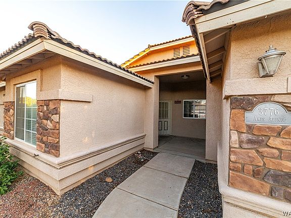 Nearly 1700 square feet to call home!! Beautifully landscaped, partially stone faced stucco on front & tile roof- just for starters! The large front entry features a vaulted ceiling covered patio area perfect for relaxing with your morning coffee at your bistro table. **Metal security door**kitchen window overlooking the front patio** Enter into the home and you have a split bedroom floor plan with 2 bedrooms down the hall to the left with ceiling fans, private guest bathroom with tub/shower combo, and a large coat closet. The Living Room is spacious again with vaulted ceiling, ceiling fan, wall to wall carpet and wood burning fireplace. Large picture windows make the living room bright and welcoming-all window coverings are also included! The casual dining area is just off the kitchen- with again spacious vaulted ceilings, and sliding glass door, exiting to the backyard. Kitchen has plenty of room and is partially open to dining area, tile floor, high/low counter top, newer stainless steel gas stove, matching stainless steel microwave, & dishwasher. The oversized laundry room is located just off of the kitchen with extra storage space. The master bedroom is HUGE with a walk-in master closet to match! Master bathroom has large soaking tub, large vanity with his and hers sinks and separate walk in shower. The backyard is enormous and features an oversized covered back patio, fully fenced with a block wall, some easy care rock and some blank landscaping areas ready for your new pool or grassy area. The brand new shed is negotiable. **Kingman AZ is the perfect place for taking the off-road vehicles w/ATV access to many trails, quiet evening walks or enjoy historical downtown restaurants and antique shops*ONLY 35 MINUTES TO COLORADO RIVER & LAUGHLIN NEVADA CASINOS*** Call your agent today for your personal showing!