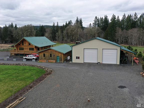 LOG HOME with river frontage! HUGE shop 60x72 with 15 ft. doors! Barn is 48x48 with three stalls, heated TR, truck & trailer covered parking. The detached 2 car garage has a nearly finished ADU or rec room. This is a one of a kind home, all the work is done! Enjoy hot summer days at the private beach on your own riverbank, listen to the river from your covered deck. Sit by the dreamy rock fireplace. Raised garden beds, partially finished basement, lean too of shop, covered run ins.