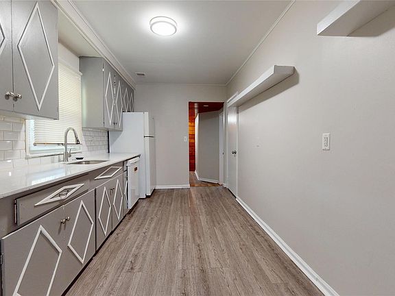 The large first-floor bedroom provides plenty of closet space, while the beautifully updated bathroom includes a modern vanity and finishes. Upstairs, you’ll find another large bedroom with a generous closet. The third bedroom offers private exterior access, making it perfect for a home office or guest suite. There is also convenient access to the attached garage through a hallway with an additional closet for extra storage.
