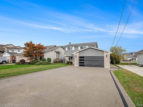 Beautifully updated canal-front home in Huron Pointe offering luxury waterfront living with every modern upgrade already done. Exterior features include new exposed aggregate concrete with custom finishes (2024), new gutters and repainted trim (2025), new sod and landscaping (2025), new boat pilings (2025), and a Trex deck plus rebuilt master bedroom deck. The property boasts a seawall accommodating up to a 50-foot boat, perfect for Lake St. Clair boaters.