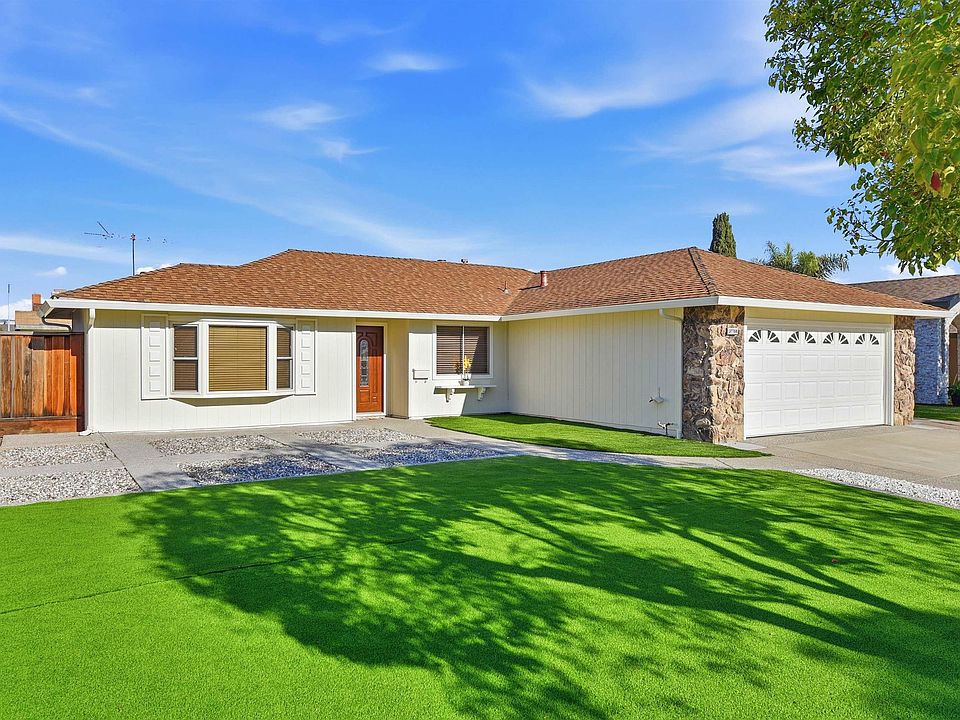 Welcome to this inviting 4BR/2BA single-story home with approx. 1,512 sq ft and a desirable no-step entry, ideal for easy access. Recent updates include newly added recessed lighting, a fresh coat of interior & exterior paint, and brand new waterproof SPC flooring throughout. The light-filled layout features a cozy fireplace and an updated kitchen with white cabinetry, stone counters, and stainless appliances, flowing seamlessly to the dining and living areas—perfect for everyday living and entertaining. Spacious bedrooms and refreshed baths, plus indoor laundry with storage. Enjoy a private backyard retreat with a covered patio, low-maintenance turf, mature citrus and persimmon trees and two storage sheds for extra storage. Convenient location near parks, restaurants, shops, schools, and quick access to I-880 and the Dumbarton Bridge for an easy commute to major tech companies. Come tour this home before it's gone!