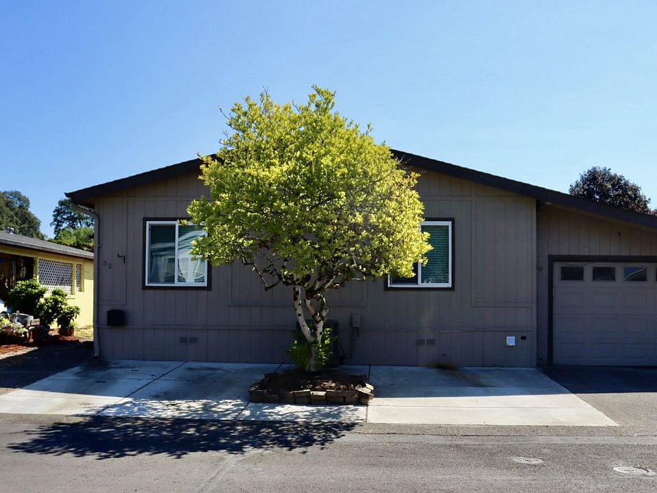 Welcome home! Nice manufactured home with oversized garage! Workbench and office in garage plus extra storage. Kitchen has new ceramic flooring and quartz countertops.. New laminate flooring throughout the rest of the home. Three car driveway. Deschutes West Coast free standing 50 jet hot tub included.Easy access to the highway, as well as amenities.