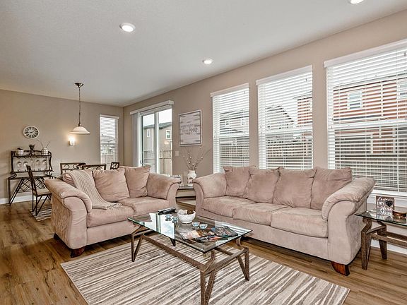 Beautiful fully furnished newer build townhome for rent in The Meadows community! This stunning townhome offers a great open floorplan with 3 bedrooms ( 2 upstairs, one in basement) and 3.5 baths (one half bath on main level, 2 full baths upstairs, one full bath in basement). New king size bed and medium firm pillow top mattress purchased December 2024 for primary bedroom (not pictured). Gorgeous high end finishes throughout! You will love the open gourmet kitchen with quartz counter tops, over-sized kitchen island, gas stove, and stainless steel appliances. Luxury vinyl plank flooring throughout the main level. Beautiful gas log fireplace with mosaic tile surround. Brand new leather sofa and loveseat in the main living area as well as a new kitchen table (not pictured). Large den area in basement. This home has been fully furnished with comfortable furnishings and all the amenities you will need including linens, cookware, small appliances, Keurig coffee maker, Amazon Echo Dot, Tesla charging station, and much, much more! Living room, loft, primary bedroom, and basement equip with new Samsung Crystal 4K TVs with streaming application capabilities. Family friendly with a pack and play, lots of toys, highchair, as well as a playground just steps away from the property! The fenced backyard offers artificial grass, a new outdoor table with seating for 6 with umbrella (not pictured), and a gas grill! All utilities included (besides cable TV)! Tons of amenities close by including shopping at the Outlets Mall & The Promenade at Castle Rock, dining, parks, Wiggly Field Dog Park, The Meadows community pool (free entry for residents), The Miller Athletic Complex (The MAC offers trails, outdoor incline stairs, playing fields, indoor pool, indoor play structure, trampolines, zip lines, rock climbing, indoor playing fields, outdoor playground, splash pad and more), Red Hawk Golf Course, & AMC Movie Theater just to name a few. Dining options within walking distance! Dogs are negotiable based on weight, breed, and age. No cats please. No smoking. Leases shorter than 6 months will be subject to a rent increase. Longer term lease also available.