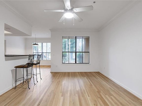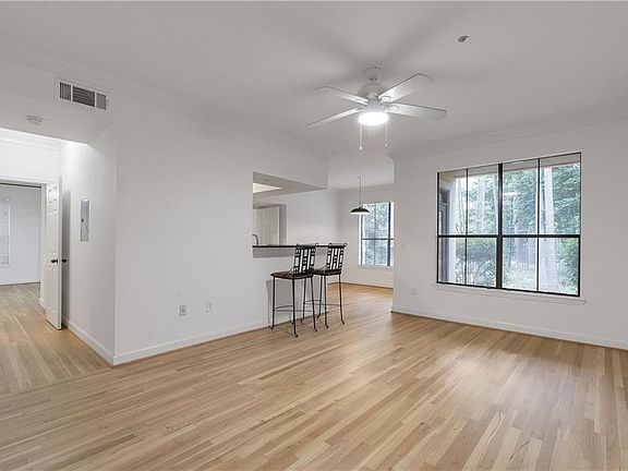 Welcome home to Peachtree Place! This light-filled and spacious two bed, two bath first-floor condo features newly refinished hardwoods, fresh paint, and a charming arched entryway. The open-concept kitchen flows seamlessly into the dining and living areas, perfect for entertaining, while large windows overlook a covered porch and peaceful outdoor space. Enjoy the convenience of two assigned covered parking spaces just steps from the unit, all within a gated community offering top-notch amenities including a pool, fitness center, business center, club room, and security. Located in prime Brookhaven with easy access to shopping, dining, and more!