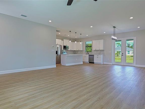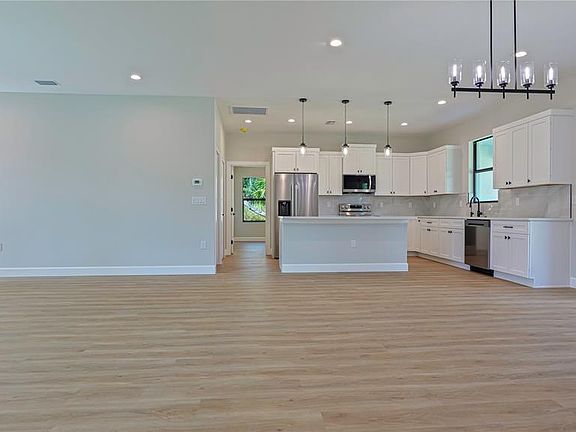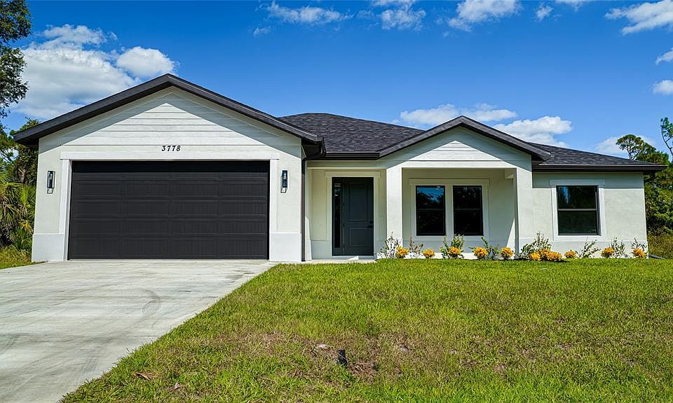 Move-in ready living with this brand-new (2025) residence nestled in the welcoming booming city of North Port. Boasting 3 bedrooms, 2 full baths with 1,669 sqft of thoughtfully designed living space, this home blends modern elegance with practical comfort executed by builder and designer perfectly. The moment you arrive, you’ll appreciate the generous 10,000 sqft lot. 9’4 ceilings and an open-floor layout create an airy, inviting atmosphere. The heart of the home is the elegant timeless kitchen and flowing living/dining area—ideal for entertaining, everyday living, and simply for relaxing at home. The primary suite offers a private retreat, while two additional bedrooms share access to a well-appointed second bath. Quality finishes include hurricane shutters, durable vinyl, tile flooring, and an attached 2-car garage. Outside, a covered front porch and patio area provide wonderful opportunities to enjoy Florida’s outdoor lifestyle. Location is key: you’re in the rapidly-growing North Port area with easy access to shopping, major services, and gorgeous Gulf Coast beaches within a comfortable drive. The home sits in Flood Zone?X — among the most desirable from a risk perspective in Florida. No-HOA New Construction single-family home in move-in condition, with smart design and location advantages. A terrific opportunity for first-time homeowners, downsizers seeking simplicity, or investors looking for a low-maintenance asset.