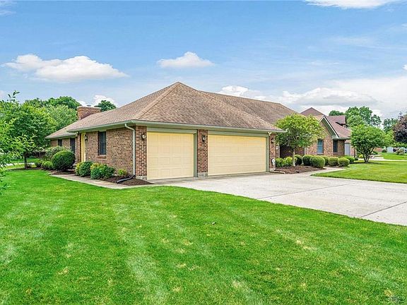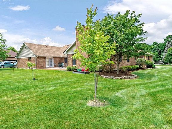SPACIOUS CUSTOM RANCH located in upscale neighborhood! Well manicured lawn and recently refreshed landscaping make the curb appeal a "10"! Inside, gorgeous ENGINEERED WIDE PLANK HARDWOOD floors begin in the foyer and continue throughout most of the home. A large study/flex room is located off the foyer with french doors for privacy - ideal for teleworking. The nearby kitchen is complete with stainless appliances, granite counters, tile backsplash and spacious breakfast area! The adjacent dining room is perfect for larger gatherings. IMPRESSIVE SUPER SIZED GREAT ROOM boasts a wood burning fireplace, cathedral ceilings, skylights, wet bar and an abundance of natural light. Convenient half bath off great rm & laundry area. Storage cabinets in laundry room will stay! The opposite side of the home presents the bedrooms. The oversized master bedroom offers a walk-in closet, french doors w/access to deck and private bathroom w/soaking tub, dual sink vanity & separate shower. Three additional large bedrooms and full bathroom complete the floor plan! Outside, a perfect time of year to appreciate the deck which can be accessed from the great room or master bedroom. Shed for extra storage and 3 car garage is a bonus! Updates include: HVAC (2016), flooring (2016), water heater (2016), water softener (2022), granite & backsplash (2017), kitchen appliances (2016), refrigerator (2020), garage door opener (2021). NO CITY TAX! Approx. 20 min to WPAFB. Minutes from the Greene, shopping & restaurants.