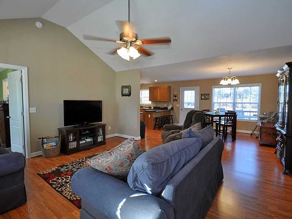 FOUR years young!! Popular split floor plan and open concept home! Soaring ceiling in great room. Carpeted bedrooms. Gallery kitchen includes kitchen appliances. All neutral colors, covered front porch and large backyard deck. Dreamy master suite with walk-in closet. Large laundry room and detached 2 car carport., ceiling fans and recessed lighting. Thermopane windows, heat pump and public water. Mid-Carolina schools.