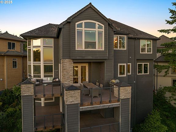 Handsome big-view living with panoramic valley and coastal range sunset vistas from multiple sun and covered decks in this Forest Heights beauty, ideally situated on a private, level cul-de-sac. Easy access to Skyline and Forest Park, downtown Portland, Nike, Intel and more. Enter to a grand sweeping staircase entry and spectacular 2 story great room with walls of windows gazing over those unforgettable views. High quality abounds with a welcoming gourmet chef's kitchen offers a butler's pantry, seating island, gas appliances, and opens to the entertaining decks for effortless hosting. Enjoy elegant formal dining and a well-appointed executive office with high ceilings throughout. Escape it all in the destination upper level primary suite with double-sided gas fireplace, view tub, and 3 additional bedrooms and 2 full bathrooms nearby offering versatility for the household. Take the party downstairs to the sprawling family room with fireplace and wet bar and opening to another set of covered decks. Fitness studio or 5th bedroom option with nearby sauna + full bathroom, wine cellar, and bonus storage! Sellers have handled many key updates including 2 new HVAC systems, certified cedar roof, new hot water heater, new siding, and more. Fruit trees planted for further enjoyment. Delight in the community-oriented Forest Heights lifestyle with nearby top schools, parks, cafes, and dining. Special Financing Incentives available on this property from SIRVA Mortgage [Home Energy Score = 1. HES Report at https://rpt.greenbuildingregistry.com/hes/OR10238841]
