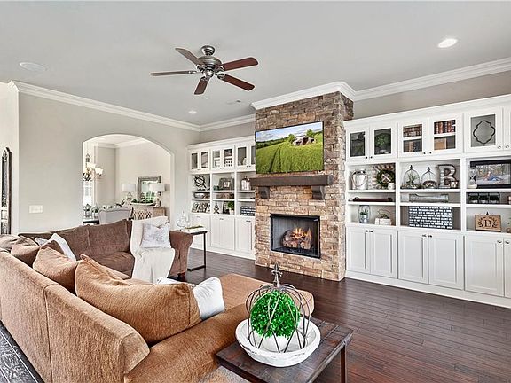 You won't want to miss this show stopper! Nestled in the desirable Angel Falls subdivision, enjoy golf course views from your spacious back deck, easy access to I-49 and a short bike ride to Har-Ber schools. The open floor plan is perfect for entertaining and the spacious master suite sits apart from the main living areas offering your own private retreat. The 4 bedroom, 3.5 bath home offers 3 cozy fireplaces, his/her separate walk-in closets, epoxy garage flooring, a formal dining room, sprinkler system, intercom system and wired for surround sound. It's the perfect place for you and your family to call "home".