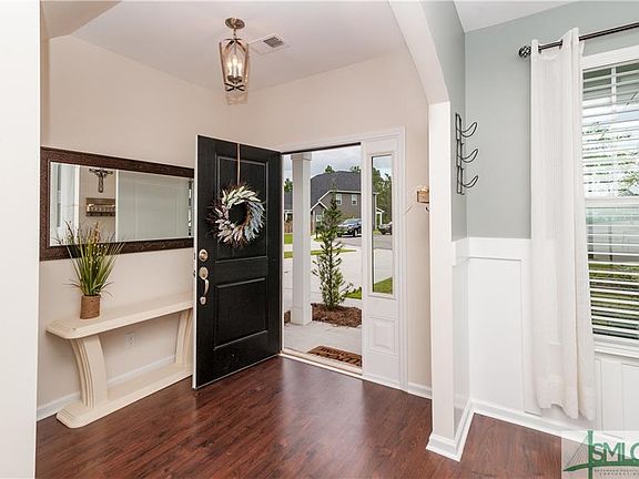 Stately Somersby home sited on a quiet cul-de-sac on over 1/3 acre backed by natural woodlands. Once inside, the home provides intimate spaces, clean lines and a contemporary flair. Main level has laminate wood floors & a kitchen with hardwood cabinets, granite counters & stainless appliances. A large island with breakfast bar overlooks a breakfast room & a deep living room. A flex room is the perfect office, den, playroom or more. The separate dining room has a coffered ceiling & contemporary glass chandelier, a half bath is off the hall. The huge 2nd floor master has a tray ceiling, a large tiled master bath with dual granite vanities & garden tub/shower combo. 'His and hers' walk-in closets accesses the laundry room with built-in folding table & storage. There are two additional bedrooms & a bonus room/den (could be 4thbed) with sliding barn doors. A second bath has ceramic tile flooring, granite counter & tub/shower combo. The covered patio is perfect for outdoor entertaining.