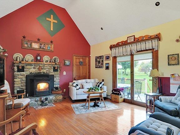 Nestled on a sprawling 21-acre property, this remarkable 4-bedroom, 2-full bath home is a serene escape from the hustle and bustle of everyday life. With its charming features and picturesque surroundings, this property offers you a unique opportunity to experience the very best of country living. Situated amidst lush fields adorned with large mature trees, this property evokes the essence of Vermont's natural beauty. Enjoy the calming sights and sounds of the outdoors as you explore your own private pond. The interior of this home is bathed in natural light, thanks to the many large windows that perfectly frame the breathtaking views of the surrounding landscape. Cathedral ceilings give the living spaces an open and airy feel, creating a welcoming atmosphere. The main living area features a cozy wood and pellet stove, creating a warm and inviting ambiance during Vermont's colder seasons. The kitchen is complete with a convenient island, stainless steel appliances, and plenty of counter space. This home also features a well-designed mother-in-law suite above the two-car attached garage. The suite is spacious, offering a comfortable and private living space for guests or even rental income potential. Don't miss the opportunity to make this your forever home. Come experience the beauty and serenity for yourself – schedule a showing today!