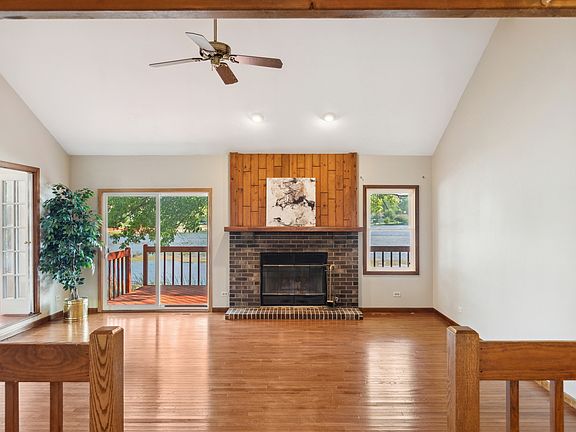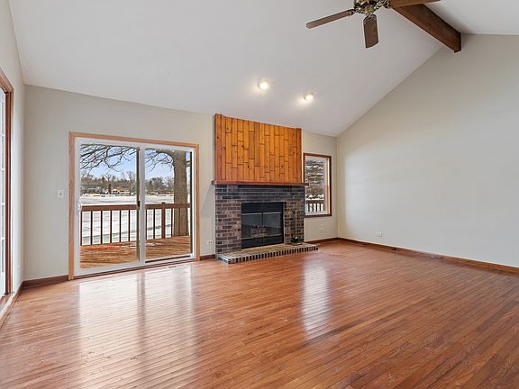 Welcome to this wonderful ranch on the lake with it's own private pier!!! The house is move in ready, and boasts 3 bedrooms, 2 bathrooms, and a formal dining room that opens up to the living room. You'll be up to date with all brand new SS appliances, new waterproof laminate flooring in the master bath, kitchen and laundry room, newer windows (2019), sliding doors (2019), front door (2019), washer and dryer under 5 years! Furnace and AC 2019, roof approximately 10 years old. Don't miss the beautiful view of the lake and all its accompanying natural light that comes through the master bedroom, living room, and dining room. The living room also has a lovely fireplace with a mantle to hold all your family pictures and decor! The house has plenty of entertainment space with a deck in the back for family gatherings. Oversized 2 car garage has extra storage room! Down the road there is a small public beach area on the same lake. You can enjoy the lake on your paddle boats as motorized boats are not allowed, enjoy the view while you play on the public sand volleyball court! This house is close to Gurnee Mills, Six Flags Great America and other shopping and entertainment facilities. Free home warranty for your peace of mind! AS IS CONDITION.