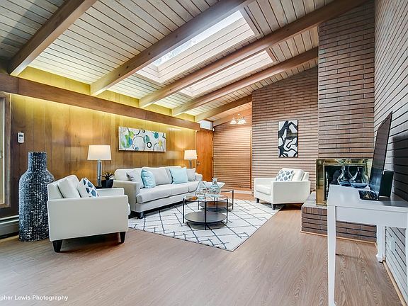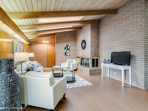 Fantastic mid-century modern gem on curved, quiet, tree lined street. Gorgeous wood beam/tongue and groove cathedral ceilings. Clerestory and floor-to-ceiling windows. Pristine original wood paneling and accordion doors. Lineal brick on the large fireplace, and brick detailing in kit, beds, LR, etc. Skylights bring in sun, and new windows keep the home energy efficient. Roomy laundry with hanging bars, window, and laundry chute. Enjoy the look of the CA Contemporary, but built to handle CO temperatures with insulated, double-sided full masonry construction. Built to commercial construction standards by the builder/architect as his personal residence. Don't settle for the typical mid century carport when you can have an attached, heated 2 car garage with add'l heated workshop. Large patio flows to the enormous landscaped backyard with hot tub tucked away in a tasteful wooden gazebo. Newer boiler, hot water heater, top-of-the-line evap. cooler. Walk to Lowry, Blvd One, Highline Canal.