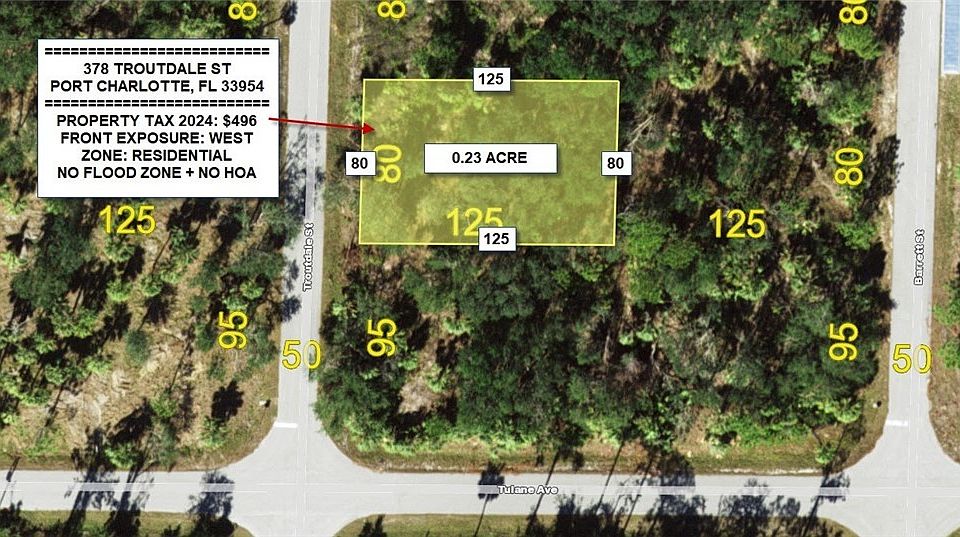 Build your dream home on this spacious 0.23-acre lot in a quiet and desirable neighborhood of Port Charlotte. Enjoy privacy and room to design your ideal Florida retreat, with no HOA or deed restrictions. Conveniently located near shopping, dining, schools, golf courses, and Gulf beaches — plus easy access to US-41 and I-75 for commuters. Perfect for building now or holding as a smart long-term investment! The adjacent lot (388 Troutdale St) is also available — buy both for a rare double-lot package!