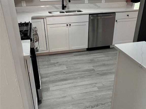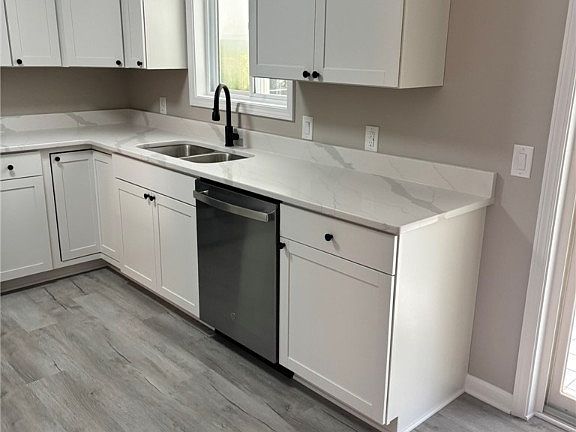 This beautifully renovated 3-bedroom, 1¾-bath bi-level home near downtown Bedford offers modern comfort and convenience just minutes from shopping and I-271. The exterior showcases a new architectural shingle roof, newer windows, and fresh paint with stylish brick accents. A spacious two-car garage with electric opener provides ample parking, while the fully fenced backyard includes a concrete-floor shed—ideal for storing lawn equipment and seasonal furniture. Inside, the remodeled kitchen and dining area feature quartz countertops, a stainless steel sink with garbage disposal, black faucet with soap dispenser, and luxury vinyl plank flooring. New white cabinetry with black hardware complements the suite of stainless steel appliances, including a gas range (with optional electric hookup), dishwasher, microwave, and French door refrigerator with ice maker. The carpeted living room offers a cozy retreat, and sliding doors lead to a covered patio with screens for year-round enjoyment. The main bathroom has been stylishly updated with a new tub, tiled walls, glass corner shelves, black mixing valve, rainfall showerhead with handheld, and durable vinyl plank flooring. New cabinetry with soft-close drawers, a hard-surface countertop, and matching fixtures complete the space. Fresh carpeting extends through the living room, hallway, and bedrooms, each with generous closet space and freshly painted trim. The home also features an upgraded electrical panel, new outlets and switches, and LED lighting throughout. Comfort is ensured with a newer A/C unit (2021), forced-air gas furnace, and brand-new hot water tank. The finished lower level adds living space with vinyl plank flooring, fresh paint, and a laundry area equipped with a new tub and electric dryer hookup. A waterproofing system and new sump pump enhance peace of mind. The lower-level ¾ bath includes a tiled shower, oversized shelf, black fixtures, and rainfall showerhead with handheld.