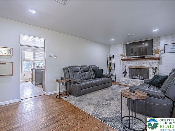 Discover effortless style and comfort in this impeccably updated 3-bedroom, 1.5-bath ranch nestled on a sprawling lot in Lehigh Township, Northampton SD. With 1,232 square feet of light-filled living space on the main floor, and 1000 sq feet finished in basement the home seamlessly blends modern finishes with classic charm. Step inside to gleaming hardwood floors that flow through the living and dining areas. The heart of the home is a designer kitchen featuring sleek cabinetry, quartz countertops, stainless-steel appliances and a generous island—ideal for casual meals or entertaining guests. Both baths have been tastefully renovated with contemporary fixtures, tile accents. Retreat to the spacious primary suite, complete with ample closet space and serene views of the property. Outside, enjoy the partially fenced yard, and large deck area perfect for outdoor gatherings or morning coffee on the deck. A two-car garage, central air, forced-air heating, and a wood burning fireplace ensure year-round comfort, while surrounding scenic vistas add to the tranquil setting. Stylish, move-in ready and desirably located, this ranch home offers the perfect blend of modern convenience and countryside charm.