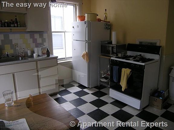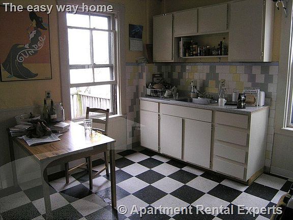 Sunny top floor of 3 family house in Dali area on Cambridge line within a 12 minute walk to Harvard. New laundromat right next door, gleaming hardwood. There is a deck off the kitchen and a shared patio. (Reference #135318)