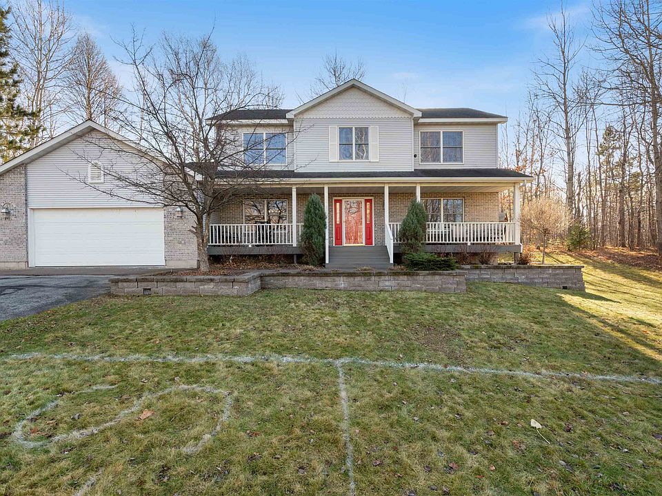 Welcome to this exceptional 4-bedroom, 4-bath home nestled on a picturesque 1.25-acre with a partially fenced lot on a cul-de sac, offering space, privacy, and desirable amenities throughout. The inviting main level features a spacious eat-in kitchen with Quartz countertops, double wall oven and a wall pantry, that flows seamlessly into the warm and welcoming family room, complete with a cozy gas fireplace that has brick surround—perfect for everyday living and entertaining and the snow season that is about to be upon us ?? There is also a formal dining room, great room, main floor laundry room and a 1/2 bath. An attached 2-car garage adds convenience, while the SAUNA w/ shower located in the garage provides a relaxing retreat! Upstairs, the sprawling primary suite serves as a true sanctuary, featuring an expansive layout with an additional bonus room ideal for a nursery, office, or private sitting area, as well as a generous walk-in closet. Master bath has walk in shower with tile surround, 2 sinks and a make up area. Additional 2 upper bedrooms are both spacious and one offers a large walk in closet! Full bath completes the upper level. The lower level offers even more living space with a ginormous recreation room, an additional bedroom, a 3/4 bath, and a huge storage area, delivering both versatility and functionality for any lifestyle. Home has central air, Newer LVP flooring in 2022, new heater in sauna, 2020 added backyard fencing. With its abundant indoor space, thoughtful layout, and beautiful 1.25-acre setting, this property combines comfort, convenience, and room to grow—an outstanding opportunity to make this exceptional home your own.
