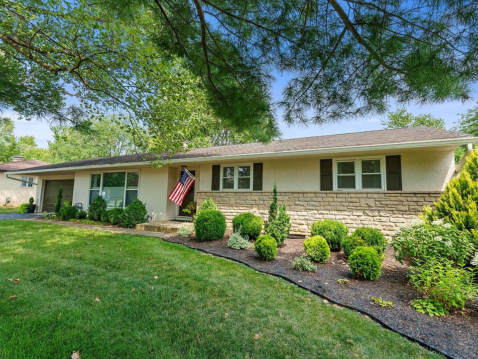 Stone & stucco 3 bedroom ranch in the heart of UA. Entry level features open kitchen to eating area, oversized great room, 1 & a half baths+ 2 car attached garage. Professionally waterproofed & finished LL boasts 750 sq ft of living space w/ secondary kitchenette/bar area & additional living room. LL offers ample storage & bonus room for workout area or additional uses. Backing up to Hastings middle school track, the beautifully landscaped & treed lot + patio allow for peaceful & private outdoor living. Heated/cooled ''shed'' offering a sitting area + office area (200 sq feet of living space). So many possibilities for this charming space (office, play space, craft area, etc). Newer driveway, irrigation system, gutters, windows & more. See attached for complete list of updates.
