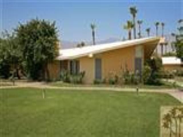 Architectural mid-century unit adjacent to Tamarisk Country Club. Two master suites (2 bedroom, 2 bath) in an open-plan unit. High beamed ceilings and block fireplace. Lots of glass and light, with pool and mountain views. Designed by Val Powelson and built in 1961 by the son of Gummo Marx. Val Powelson was the architect for a number of custom homes in Rancho Mirage. Only twenty (20) units in the development. Large heated pool and spa. Lushly landscaped grounds, with citrus trees, palms, lawns, hedges and flowering plants.