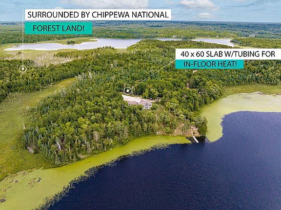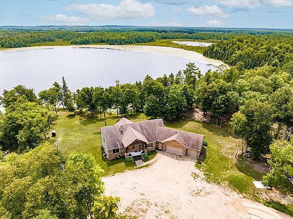 Welcome to the ultimate Up North Retreat! The quality is evident as soon as you walk in, from the exposed beams to the cozy stone fireplace with built-ins, and gourmet kitchen with granite countertops and oversized island. A primary suite with walk-in closet and full bath with jacuzzi tub & double sinks, additional bedroom, full bath, bonus sunroom, and spacious laundry make main floor living effortless. In the walkout lower level, you’ll find 3 bedrooms, full bath, ample storage, and family room space with fireplace, all featuring custom ICF foundation (to roof), in-floor heat, and tall ceilings. Efficiency was top-of-mind when constructing this home. The attached 3-stall garage is heated and insulated. An additional 40 x 60 slab is prepped for in-floor heat and ready for the addition of a workshop/garage. With 1063’ of shoreline on Poverty Lake, being situated on over 23 acres that adjoin hundreds more of forestry land, privacy will allow all opportunities to embrace the Northwoods.