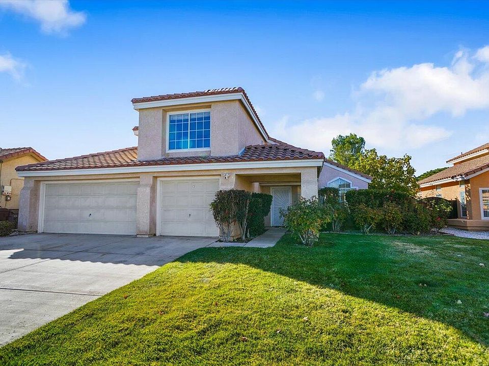 Gorgeous Palmdale residence with a pool! This two-story home boasts 4 bedrooms, 2.5 bathrooms, a family room, and an expansive master suite with a large deck that overlooks the pool. The kitchen features a breakfast nook, abundant cabinets, and granite countertops, while all the bathrooms have been upgraded with granite counters. The family room is equipped with a fireplace and a sliding door that opens to the pool deck. With vaulted ceilings, a fresh coat of paint, and newer floors throughout, the home is bright, airy, and move-in ready. Additional highlights include central air and heat, a tile roof, a laundry room adjacent to the garage, a spacious driveway, and three car garage. Don't miss the opportunity to see and appreciate this property!