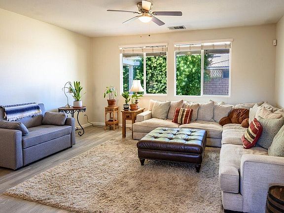 Welcome to Talavera, one of North Indio's most desirable gated communities! This beautifully maintained 3-bedroom, 2-bath home offers nearly 1,900 square feet of stylish living space in the sought-after Florencia section of the neighborhood. Step through the elegant rotunda entryway into a spacious open floor plan featuring modern and elegant wood-like tile flooring, a comfortable living and dining area, and a family room with a cozy fireplace that opens to the kitchen and breakfast nook. The kitchen offers abundant cabinetry and plenty of counter space -- ideal for both everyday living and entertaining. The primary suite is your private retreat, complete with a large walk-in closet, dual vanities, soaking tub, and separate shower. Two additional guest bedrooms, a full bath, and a convenient built-in desk nook provide comfort and flexibility for family or guests. Buyers will appreciate that the closets have been updated with built-ins and the kitchen and bathrooms now have soft close drawers. Outside, enjoy a beautifully landscaped backyard with numerous lemon trees, a covered patio, perfect for relaxing or dining al fresco year-round. Residents of Talavera enjoy low HOA dues, guard-gated security, multiple parks and playgrounds, and a strong sense of community. The home is zoned for top-rated schools including Ronald Reagan Elementary, Desert Ridge Academy, and Shadow Hills High School. Ideally situated in the IID utility district for lower electric costs, this home offers easy access to shopping, dining, and just minutes from the Acrisure Arena, Indian Wells Tennis Garden, Coachella and Stagecoach Festival grounds, and world-class golf and resorts. The I-10 freeway is also close by for quick trips to Palm Springs. Whether you're seeking a perfect family home or a prime investment property, this exceptional residence delivers comfort, convenience, and the desert lifestyle.