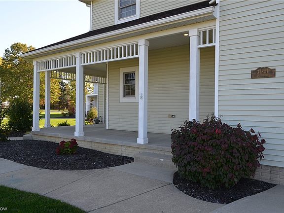 Welcome home! This custom built home on almost 3/4 of an acre is sure to please. Not your run-of-the-mill cookie-cutter development house. Set back off the road for privacy this home welcomes you with a covered front porch that screams for rocking chairs and iced tea conversations! A covered rear porch and a blank slate of a rear yard has potential for many opportunities. Solid Cherry hardwood floors invite you in. Wood windows throughout. An eat-in kitchen and 1/2 bath complete the first floor. A large master suite with private master bath. Ceramic tile, soaking tub, separate shower and double sinks make for an owner's retreat. Walk-in closet. THe second bedrooms have ample closet space and the smallest of the 3 could be used as a home office or media room. All kitchen appliances stay (refrigerator new '22 and dishwasher new '23) plus washer and dryer. New A/C unit installed 3/23. Think outside the box .... do you need/want privacy, space to build a barn, detached garage, small animal farm or large garden without having to get any association permission? A beautiful view of serenity. The rear property is owned by neighboring families and they plan to keep it for agricultural use. North Ridgeville is a growing community. Live close to life with the feel of country!