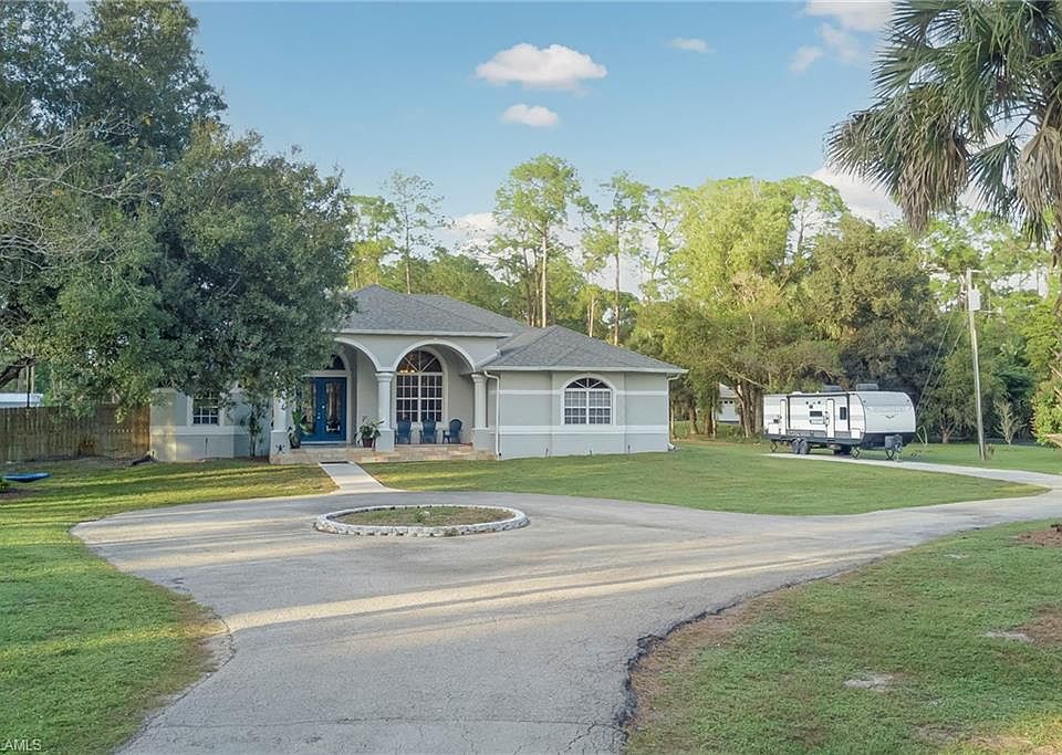 Welcome to your own private oasis tucked away just off Collier Boulevard! This beautifully maintained 4 bedroom, 2.5 bath pool home sits on an oversized 2.73-acre cleared lot, offering the perfect blend of tranquility, nature, and modern living. Enjoy a custom pool with tanning shelf, elegant fountains, and plumbing for a future outdoor kitchen, making it ideal for entertaining or unwinding in complete privacy. The fenced backyard provides peace of mind and includes two wind-rated Amazon storage buildings (120 mph rated) for all your toys, tools, and extra storage. Inside, you’ll find 2,537 sq ft of comfortable living space filled with natural light and thoughtful updates throughout. The home features new appliances, fresh interior paint, a brand-new reverse osmosis system, and a new roof with gutters (2022). Solar panels are fully paid off, keeping your pool heating bills low. Additional highlight of the home is the oversized guest bedroom suite, complete with its own wet bar and half bath, offering direct walk-out access to the pool and lanai — perfect for guests, entertaining, or even a private retreat. Additional features include a well-fed irrigation system, pumped septic system (March 2025), and beautifully landscaped grounds with plenty of room to expand or simply enjoy the peaceful beauty of Southwest Florida’s natural surroundings. Includes a 100’ x 90’ agility field with a durable screenings surface—similar to horse arenas—ideal for training, recreation, or equestrian use. The space could also be converted into pickleball courts, a workshop, or customized to fit your lifestyle. Conveniently located just minutes from town yet surrounded by quiet privacy, this home truly offers the best of both worlds — space, serenity, and style.