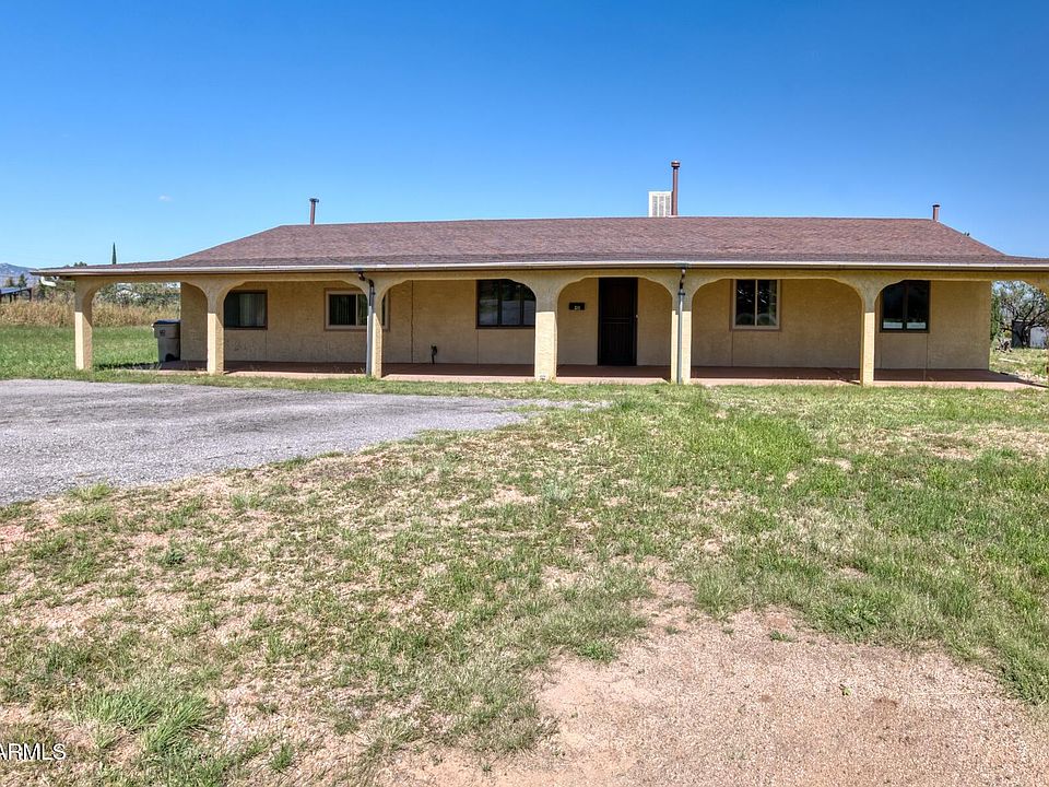 Spacious 3BD/2BA home offering 2,386 sq. ft. plus a gigantic bonus room perfect for a game room, rec room, or den! The front covered porch is huge. Step into the large living space and dining area. Enjoy a fabulous kitchen with plenty of cabinet and counter space for cooking and baking! The primary suite is spacious with a large closet and hosts a fantastic bathroom design which separates vanity space and the bathroom hosting a big walk-in shower and built-in shelves. Big indoor laundry room w/room for storage, clothes racks or more. Wonderful tile throughout! Even a tile-floored back patio. Outdoor living shines with a lush lawn, plenty of space for an RV, shop, or garden, on over an acre. Country living at its best beneath the Huachuca Mountains—yet minutes from town amenities!