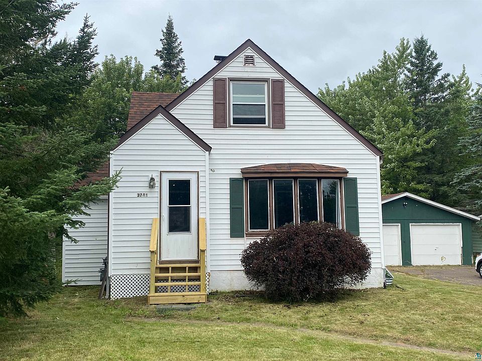 This charming 3+ bed Hermantown home on a 1/2 acre combines the country and city lifestyle. Step through the charming mid-century archways to the large living room with dark hardwood floors and a sunny bay window. Enjoy your sunny eat-in dining space, or keep an eye on things from the kitchen peninsula. Easy access for your outdoor lifestyle with the sliding glass door to the large private deck and backyard. Don't miss the convenient main-level bedroom, or head upstairs for two more bedrooms. The second story bathroom features a custom tile shower. In the basement, you'll find lots of space including a 1/2 bathroom, a 4th non-conforming bedroom with egress window, and a laundry space. Previously a rental, this home was Purchased in 2022, the house has a new added half bathroom, fully painted basement, new front porch, new refrigerator, new paint in kitchen and exterior for the double garage, with added garden beds and more space available. There’s a plethora of possibilities at this property, and enough of a blank canvas for you to make it your own in this gorgeous area. The 2-car garage and long driveway have heaps of possibilities for all of your hobbies. While you probably don't need it right now, this home features air conditioning! Don't miss the additional storage shed, hidden in the forest behind the house. The fall colors are beautiful. This is a great opportunity to set roots in Hermantown.