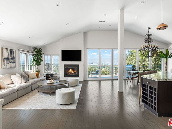 Welcome to this stunning one-of-a-kind home perched in the hills of Studio City with breathtaking panoramic views! The open main level offers a bright living room with fireplace and a modern kitchen with stainless steel appliances, Caesar-stone countertops, island seating, and dining area. Fold-away glass doors open to a deck with fire-pit and incredible Valley and mountain views. The luxurious primary suite includes a fireplace, balcony, spa-like bath, walk-in closet, BBQ patio, and a second deck with a swim spa hot tub. The lower level features a family room with balcony, gym, steam shower, and bonus room. Designer upgrades include LED lighting, surround sound, security system, whole-house water filtration system. The terraced yard is landscaped with beautiful greens. A must-see gem offering unmatched views and modern luxury! Available long or short term.