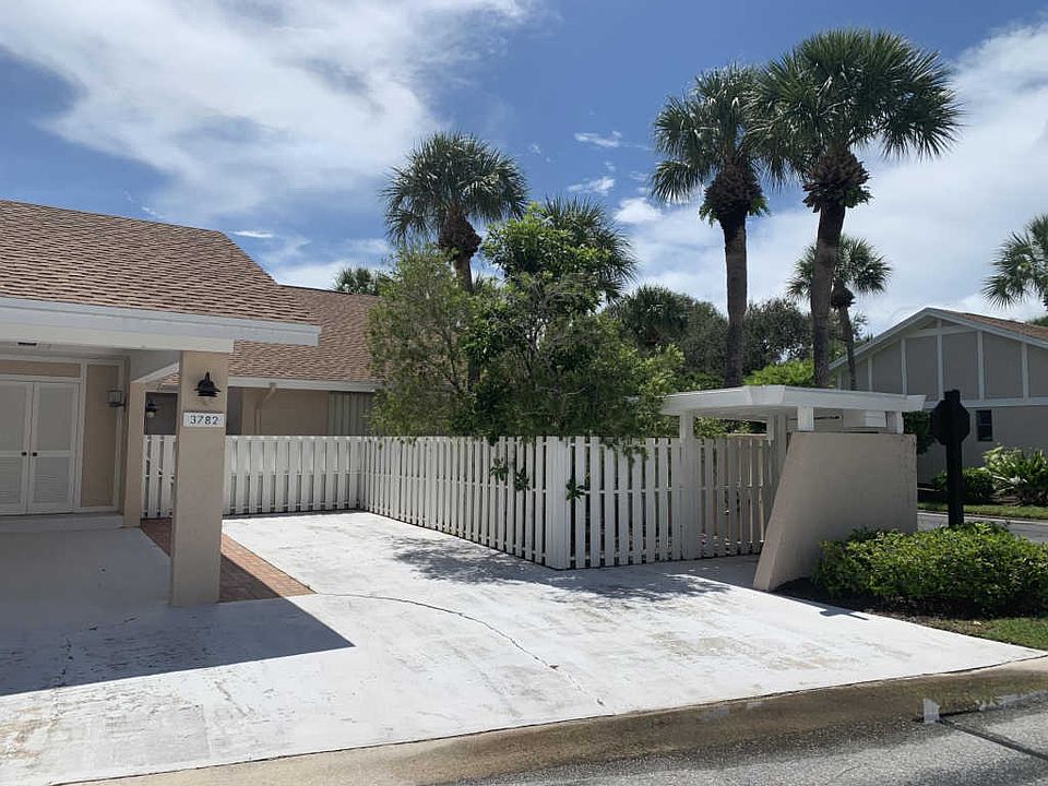 This property is ready to be renovated. Great layout with sliding glass doors to patio or garden area from every room! Vaulted ceiling in living room with clerestory windows creates and open and spacious feel. Living areas and patio face south so the house is bright and cheerful (please note photos were taken with hurricane shutters closed). Full hurricane protection. End unit and nice greasy area beyond patio. Most Cape Pointes on the garden side back up to another Cape Pointe patio. The back of this property faces the side of an adjacent property so it has far more privacy than most. Cape Pointe community green space across the street, and lakefront community pool is a few doors away. Big dogs are welcome in Cape Pointe. Memberships available, but not required.