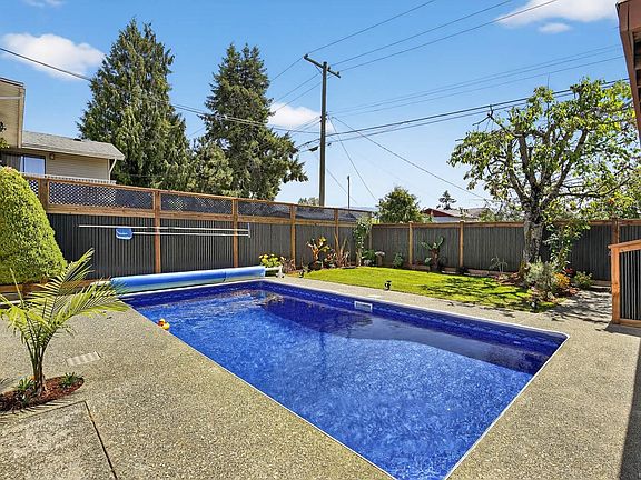 Completely modernized, this stunning 3-bed, 2-bath top-floor home with a full 2-bed suite has been rebuilt from the kitchens and bathrooms to the flooring and the impressive inground pool. An Upper North Port oasis, it features a fully refreshed pool with sleek concrete decking for the ultimate staycation vibe. The main level offers 3 spacious bedrooms, while the lower suite provides excellent income or guest potential. Attached and detached double garages with alley access add exceptional versatility. Inside, enjoy bright open-concept living with a brick fireplace, formal dining, and a large kitchen with eating nook leading to a deck overlooking the landscaped, fully fenced yard. Recent upgrades include fresh paint, new flooring, and enhanced privacy fencing. A perfect blend of comfort, style, and functionality—your private paradise.