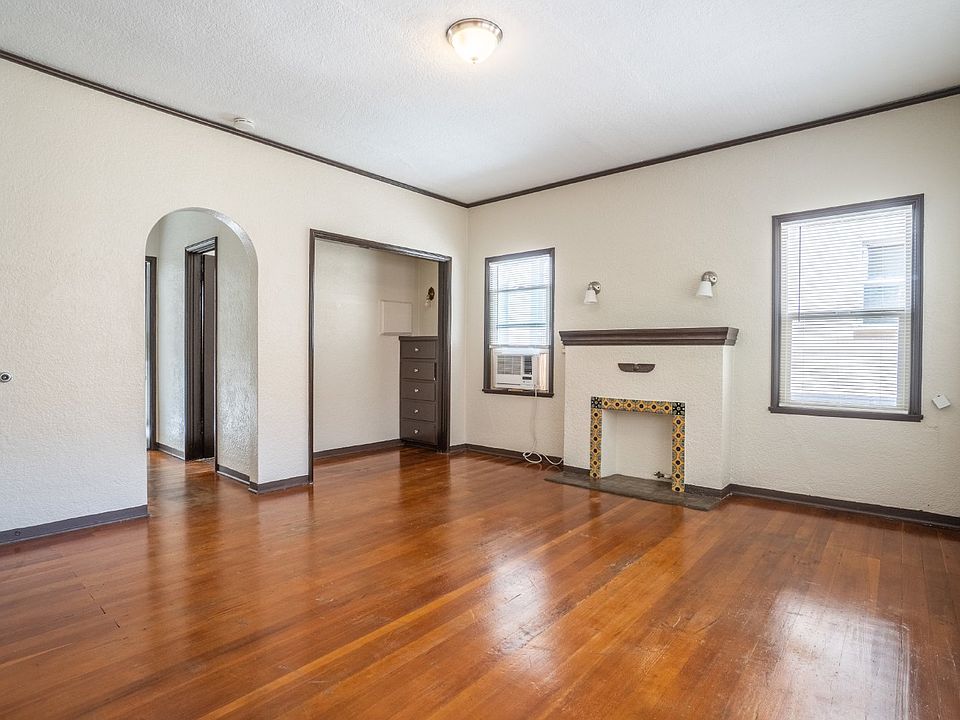 Arch detailsGorgeous deco fireplaceBonus walk-in closetReal wood floorsLots of natural lightSpacious floorplan