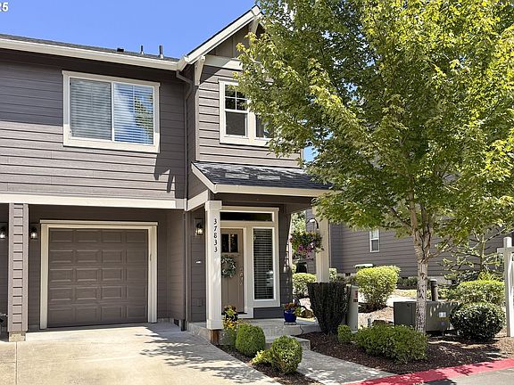 OPEN HOUSE SUNDAY 8/12 12-3:00pm Step into a world of elegance and ease with this breathtaking 3-bedroom, 2.5-bath haven, perfectly nestled just moments from the vibrant Bornstedt Park and its playful splashpad! This modern masterpiece invites you in with an airy, open-concept design, boasting lofty ceilings and a sprawling living area that’s tailor-made for unforgettable gatherings or cozy evenings curled up by the glowing fireplace. The heart of this home is its gourmet kitchen—a culinary enthusiast’s dream—complete with a grand center island featuring dual sinks, top-of-the-line stainless steel appliances, a double oven gas range, and sleek soft-close cabinetry. A well-appointed pantry ensures every ingredient is at your fingertips, making everything from quick breakfasts to lavish dinner parties a delight. Retreat to the luxurious primary suite, your personal oasis, with a spa-inspired private bath and an expansive walk-in closet that redefines storage. Upstairs, a versatile loft offers endless possibilities—think chic home office, imaginative playroom, or tranquil reading nook—while the conveniently placed laundry room, washer and dryer included, elevates everyday living. Step outside to your private back patio, perfect for sizzling BBQs or starlit gatherings with loved ones. Security items included, doorbell camera, entry way sensors, and base station. With the HOA handling all exterior maintenance—siding, roofing, paint, front yard landscaping, and community spaces—you’re free to savor low-maintenance living. Equipped with stylish laminate flooring and refreshing central A/C, this home keeps you comfortable year-round. Beyond your doorstep, the Pacific Northwest’s endless outdoor adventures—hiking, biking, and serene escapes—await. This isn’t just a home; it’s a gateway to a life of joy, connection, and effortless sophistication. Seize the opportunity to make it yours today!