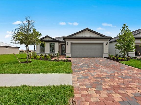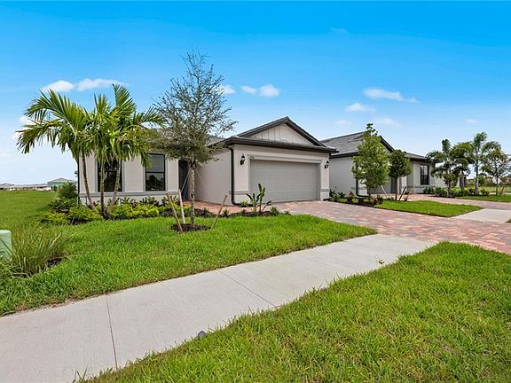 Special Financing available. Move-in ready home AVAILABLE NOW in Hampton Lakes at River Hall. The Mystique floor plan features 3 bedrooms, den, 2 full bathrooms, and 2-car garage. The nicely appointed kitchen is open to the gathering room, with center island and stainless steel appliances. Expertly designed with Quartz counters in the kitchen and bathrooms, upgraded cabinets in white, porcelain tile flooring in the main living areas and wet areas. Neutral colored carpet in the bedrooms. Zero-corner sliding glass doors lead to the 24'-4"x8'-0" L shaped covered lanai that is screened in and ready for relaxation. Laundry room with washer/dryer pair and laundry tub. Tray ceiling in the Gathering Room elevating the home. There is room for a pool to be built after closing if desired. Hampton Lakes features amenities including a 14,000 sq. ft. clubhouse, lagoon style pool, fitness center, sports courts, and 18-hole golf course (membership optional). Photos are for illustration purposes only, options may vary.
