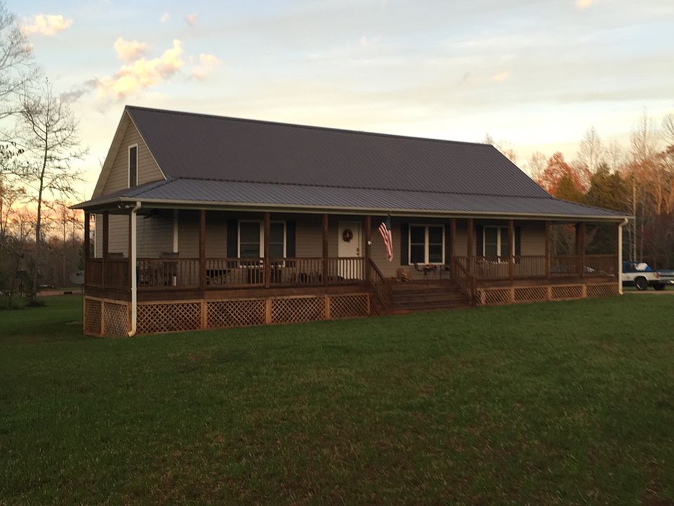 House and land for sale. Custom stick built home $278,000 Ben Russell 803-417-3146 3784 Wilson chapel rd Sharon SC 29742 3 bed 2 bath down stairs is Close to 1,700 sq feet Upstairs is partially finished with 2 more rooms a hallway and plumed for 3rd bath. Porch is 78 feet across and 20ft down each side. Tin Roof, Tile in bathrooms laundry room and master closet ,12 mm handscraped laminat floors everywhere else. 2 shower heads in master bath and a claw tub. Granite in kitchen and both bathrooms. 30x80 garage with 12x60 lean too off back with a parts room and paint booth that's 20x22. 16 acres with woods, field and large creek on back. Power ran underground to home no poles. Power ran under ground to house and shop no overhead lines. Comes with all GE stainless steal profile appliances and front load washer and dryer 2 flat screen tvs this all cost over $20,000 and is included with house at no extra charge.