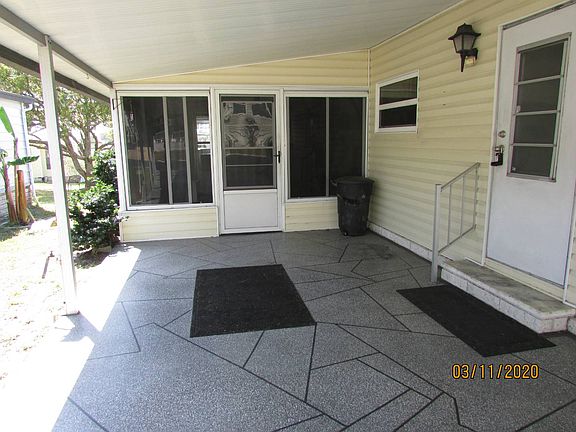 THE LAND IS NOT INCLUDED IN THIS SALE. LOT RENT WILL BE $646 which includes trash, lawn care, pass on tax, pool and ameneties. The home has 2 bedrooms and 2 full bathrooms. If you like entertaining, you will love the living areas of this home. It features a large open living room and dining room combo next to the kitchen and a family room at the front of the home. If you still need more space there is a large Florida room and utility room on the side of the home. Lots of upgrades have been done to the home as well. The Master bathroom has been remolded with a beautiful new vanity, a new AC in 2017 along with a new garbage disposal and sink. In 2018 a new electrical panel and water heater were installed. This home had a leak and the one bathroom floor and the 2 bedroom need the floors fixed. There was a roof leak that was fixed and 2 pieces of paneling need to be replaced. The ceiling was patched in the living room. A full home inspection was just done in February and that is all that is wrong with the home as far as report states. The report will be furnished. This is a great home! This home is located in gated Spanish Trails which offers a swimming pool, shuffleboard and lots of fun activities at the clubhouse. Schedule a showing today to see this move in ready home!