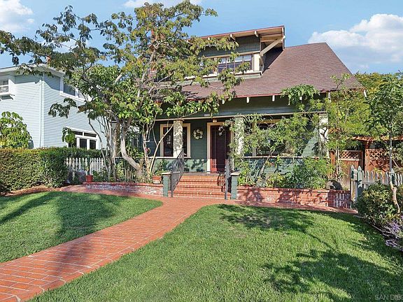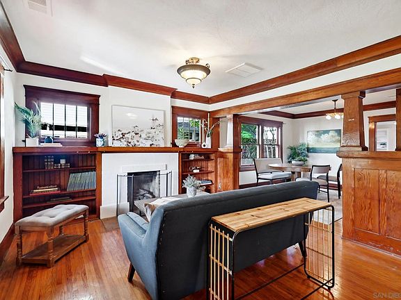 LOVE at first sight! This charming home blends craftsman curb appeal with an inviting front porch, leading to a unique blend of original details and modern touches that perfectly complement today's living. Inside, you'll find character and charm at every turn, with a fireplace, original hardwood floors, gorgeous wood trim and crown moldings, custom built-ins, bookshelves, and vintage lighting fixtures that make this home truly a one of a kind GEM! The flexible floor plan features multiple rooms on both levels, designed to suit a variety of needs. The main level includes formal living and dining rooms, a cozy den, an office with custom shelving, a spacious family room, and an updated craftsman-style eat-in kitchen. The kitchen and family room flow to the private backyard entertaining areas. Upstairs, the oversized primary suite offers ample space for sitting areas, vaulted ceilings, a private balcony, and a huge walk-in closet/dressing room and walk-in shower. Three additional guest bedrooms, a full bath, and a large laundry room with plenty of storage and workspace complete the upper level. Outside, the fully fenced yard features a grassy area and several shaded seating spots for relaxation. Located in a historic neighborhood, this home puts you within easy reach of Mission Hills, Hillcrest, Bankers Hill, Balboa Park, and a wealth of dining, shopping, museums, and nightlife options. With quick access to freeways, you can be in Mission Valley, Downtown, or beach communities in minutes!