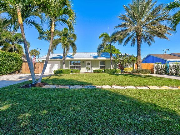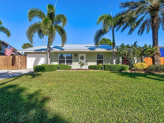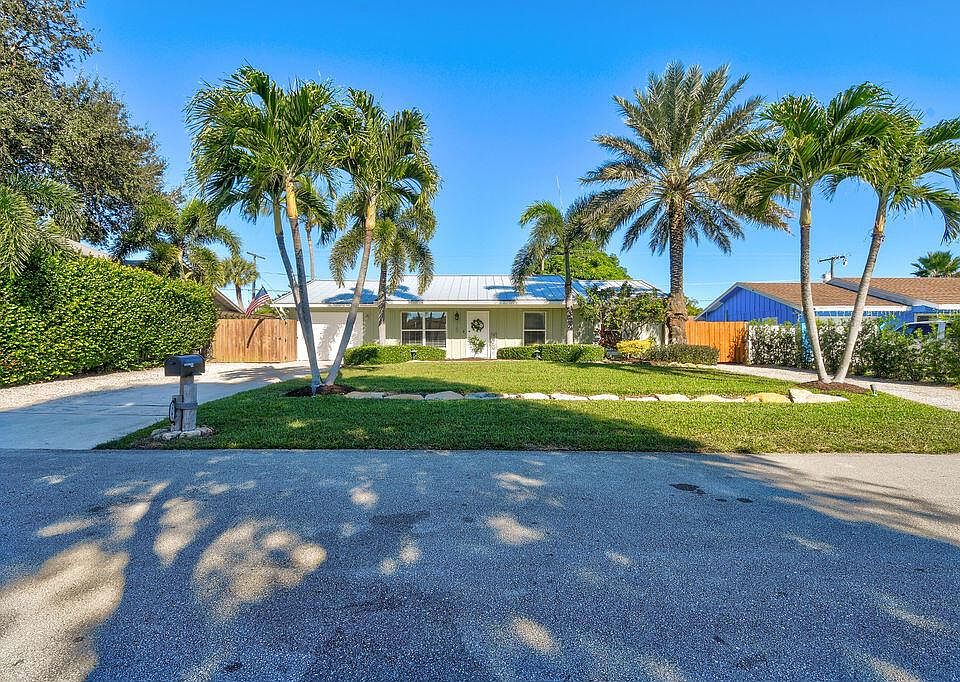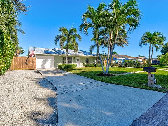 Tucked within the well-known A-B-C streets of a sought-after Boynton community with no HOA, this amazing home offers four bedrooms and two baths with a fantastic, upgraded floor plan. Out front, find an extra wide drive with great additional parking and picture perfect, custom landscaping. Inside, the bright, open concept boasts tiled floors and an attractive color scheme, upgraded two panel doors with new hardware, plus modern baseboards and trim. The comfortable main living has a large window looking out to the neighborhood. Settle in and watch a favorite show together! Beyond, the newly remodeled kitchen (2020) showcases white, solid wood cabinets, that are perfectly paired with attractive butcherblock counters and a shiplap back splash. New, black stainless-steel (SEE SUPPLEMENT) appliances, an oversized stainless sink, built-in pantry, under cabinet lighting, and a wine rack make everyday meal prep a breeze. Lovely French doors open out to the spacious and wonderfully private, fully fenced back yard with tall privacy hedges, a 10x14' shed, and aluminum reinforced gates on either side of the home. Host a BBQ with family and friends while surrounded by exquisite professional landscaping which includes lighting, Wi-Fi controlled irrigation, and mature palms. Upgraded soffit mounted, LED recessed light fixtures have been installed around the exterior of the home. Enjoy a peaceful night's sleep in the gorgeous master bedroom with chic shiplap accent wall, large walk-in closet with custom built-ins, new hunter fan and upgraded window treatments. A sliding barn door provides access to the large ensuite bath with desirable upgrades including a new toilet, cabinetry, light fixture and tiled shower with bench seat, shelving, door, showerhead and glass enclosure. The gorgeous guest bath was completely renovated in 2021 and boasts a shiplap accent wall and ceiling, upgraded fixtures and mirror, plus new toilet, cabinetry, cast-iron bathtub with subway tile shower enclosure and upgraded plumbing fixtures. Find a complete set of hurricane shutters for all windows and doors including a garage door brace plus, new washer and dryer installed in 2019. Additional features and upgrades include a new, standing seam metal roof with fascia (2017) with 20-year warranty, Lennox Central A/C (2015) with warranty until 2025, new wood siding - freshly painted and sealed (2021), and new gutters in 2017. A hidden, built-in wall safe and complete Vivint security system with four outdoor cameras and security doorbell provide added peace of mind. This gem will not last long! Schedule your showing today.