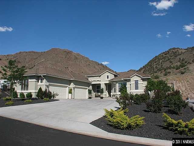 Hidden Valley's Grand Vista is Reno's lovely secret. Immpeccably kept home with zeroscape landscape w/fully fenced yard.RV Parking.Very large stamped concrete patio with under eves lighting. Over 80 rose bushes + bulbs. 10ft ceilings, highly upgraded throughout.Chilean granite kitchen counter tops, pantry, breakfast bar + casual dining area.Prewired for surround sound. Large laundry room w/cabinets + sink. 4 car garage + workshop.