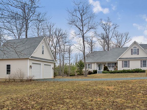 Beautiful home on a beautiful, nearly level & very private 6.73 AC lot just minutes from the new Cunningham Creek Winery in Fluvanna County. One level living throughout offering gorgeous hardwood floors, gas FP, a 4 season Sun Room with wood burning stove & expansive deck to enjoy your outside paradise. 4 Large bedrooms, walk in closets, oversized 2 car garage & detached additional 2 car garage with walk up storage above. Flowing floor plan, loads of storage, quality built. Gourmet kitchen offers gas cooking, granite countertops, stainless appliances & HUGE walk-in pantry. Formal flower & vegetable gardens. Convenient to shopping & restaurants.