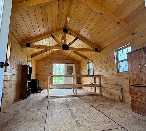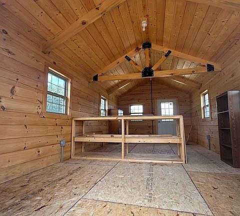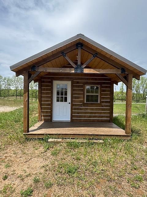 This is a a 12'x24' Amish-built log building with a metal roof. It is fully finished inside, fully insulated and wired. This building is in beautiful condition and would make perfect hunting cabin or vacation home.