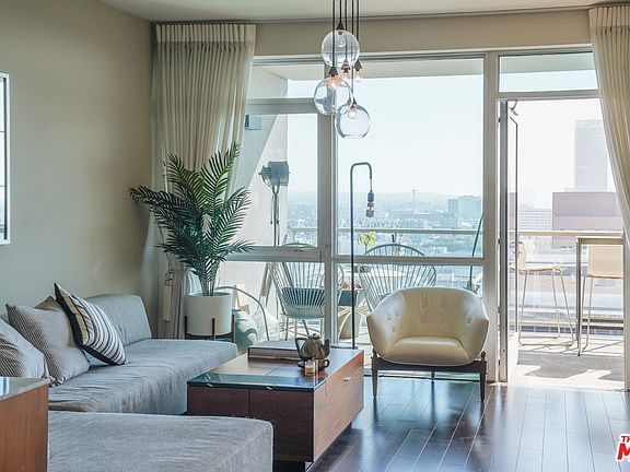 Chic indoor/outdoor high-rise living in the most sought after address in Koreatown- Solair! Breathtaking views from your living room and huge 300 square foot balcony, perched twenty floors above the City of Angels with views from the Hollywood Hills, San Gabriel Mountains, Downtown LA and beyond. Unit 2006 is a bright refined space with views from both bedrooms and living room. East facing with stunning views of morning light and sunrise. Situated on this historic intersection, across from the famed Wiltern Theatre in the center of Koreatown, within walking distance to some of the best restaurants, bars, boutiques and coffee shops in the city, as well as a Metro Purple Line stop on the corner. The master suite has private access to the balcony and a huge, hotel style 'rain room' shower. Custom lighting and lots of custom storage throughout unit. Building features resort style amenities, 7th floor pool, spa, gardens, lounge, fitness rooms, and private resident's club.